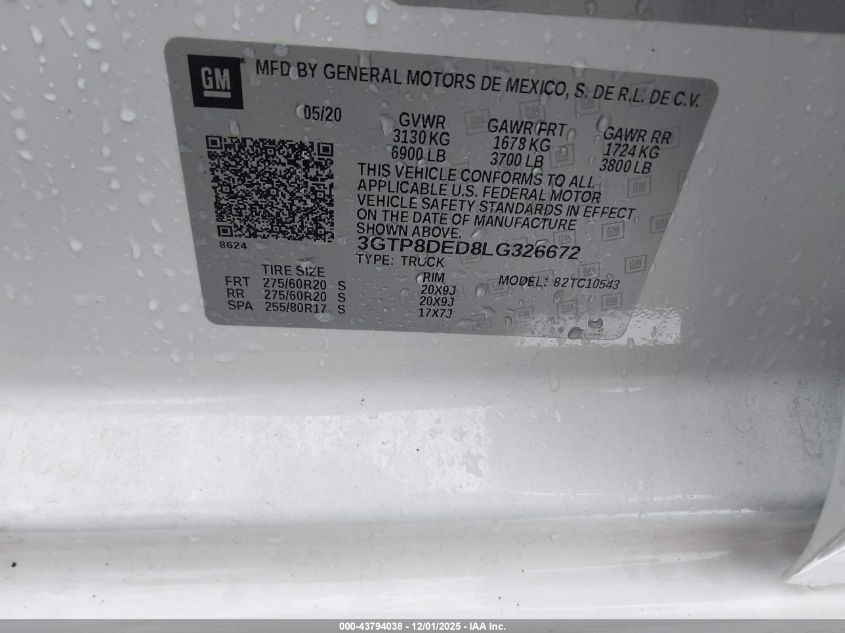 2020 GMC SIERRA 1500 2020 року Бензин, 5.3, , vin - 3GTP8DED8LG326672 из США