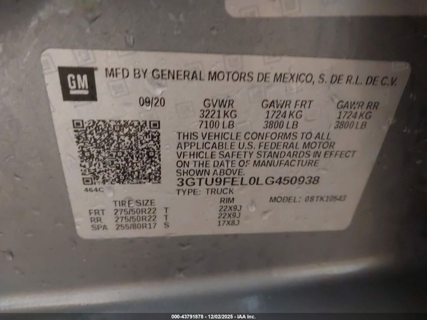 Цвет СерыйЦилиндры 8Привод Полный приводVIN 3GTU9FEL0LG450938Состояние СтационарноПовреждения Опрокидывание
