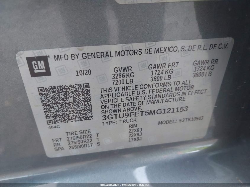 Цвет СерыйЦилиндры 6Привод Полный приводVIN 3GTU9FET5MG121153Состояние ЗаводитсяПовреждения Передняя или задняя