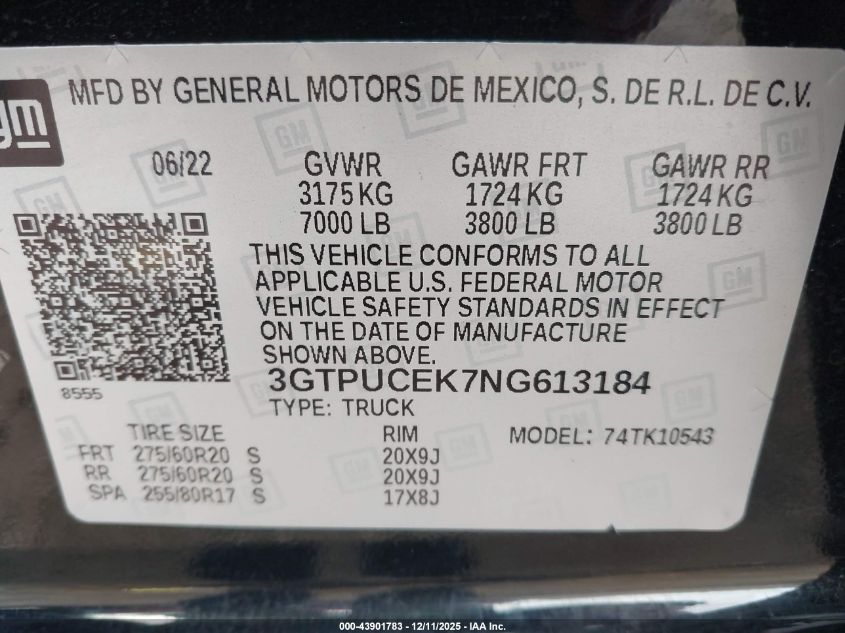 2022 GMC SIERRA 1500 2022 року Бензин, 2.7, Полный привод, vin - 3GTPUCEK7NG613184 из США