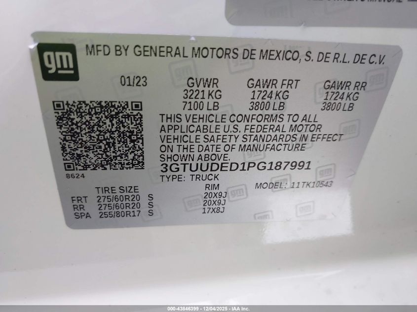 2023 GMC SIERRA 1500 2023 року Бензин, 5.3, Полный привод, vin - 3GTUUDED1PG187991 из США