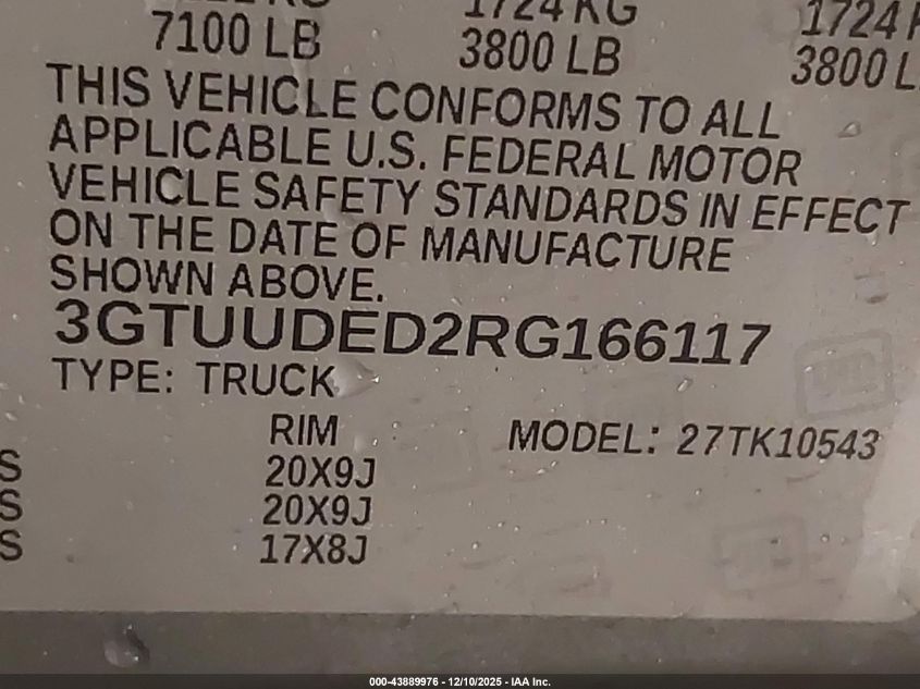 Цвет СерыйЦилиндры 8Привод Полный приводVIN 3GTUUDED2RG166117Состояние Заводится и едет (проверено)Повреждения Правая сторона