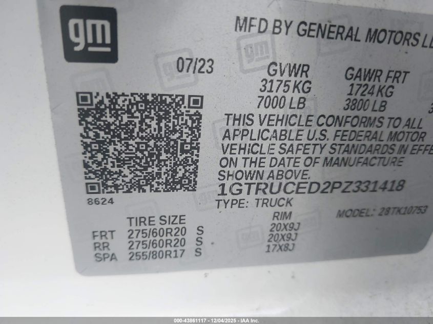 2023 GMC SIERRA 1500 2023 року Бензин, 5.3, Полный привод, vin - 1GTRUCED2PZ331418 из США