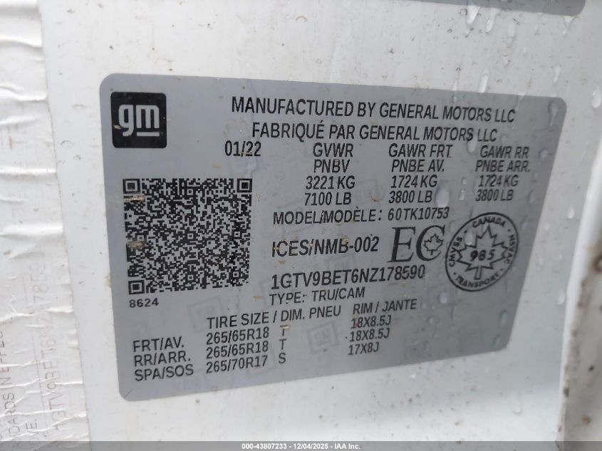 2022 GMC SIERRA 1500 2022 року Дизель, 3.0, Полный привод, vin - 1GTV9BET6NZ178590 из США