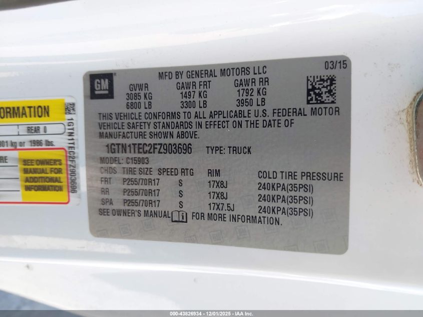 2015 GMC SIERRA 1500 2015 року Бензин, 5.3, , vin - 1GTN1TEC2FZ903696 из США