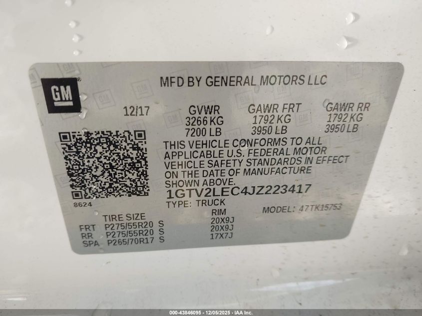 Цвет БелыйЦилиндры 8Привод Полный приводVIN 1GTV2LEC4JZ223417Состояние СтационарноПовреждения Передняя левая
