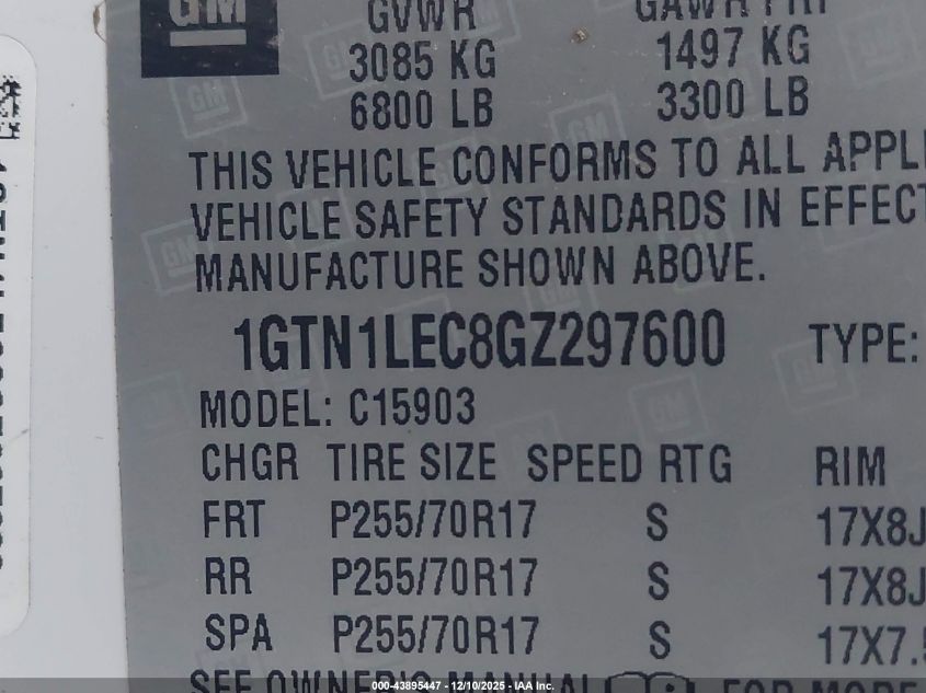 Цвет БелыйЦилиндры 8VIN 1GTN1LEC8GZ297600Состояние СтационарноПовреждения Правая сторона