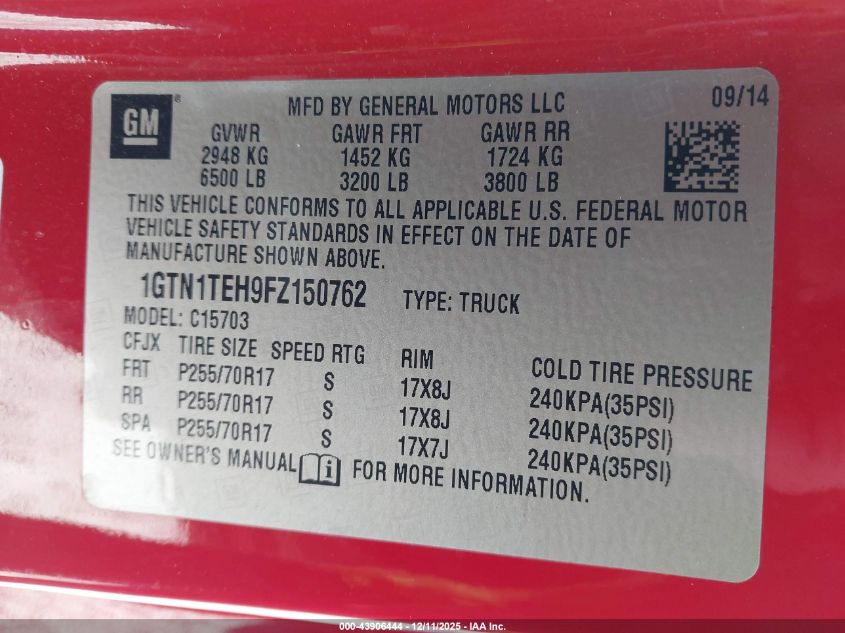 2015 GMC SIERRA 1500 2015 року Бензин, 4.3, , vin - 1GTN1TEH9FZ150762 из США