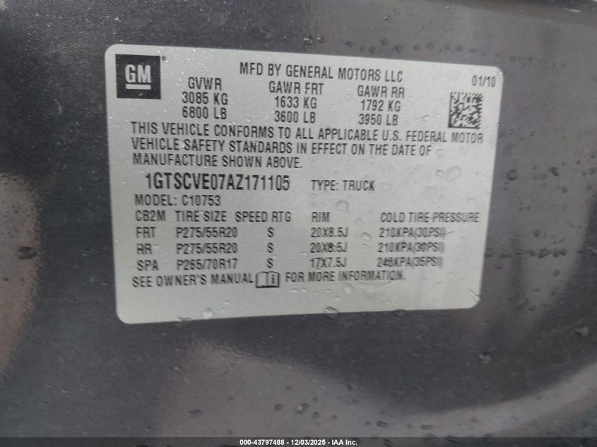 Цвет СерыйЦилиндры 8VIN 1GTSCVE07AZ171105Состояние СтационарноПовреждения По бокам