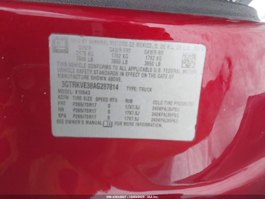 Цвет КрасныйЦилиндры 8Привод Полный приводVIN 3GTRKVE38AG287814Состояние Заводится и едет (проверено)Повреждения Передняя или задняя