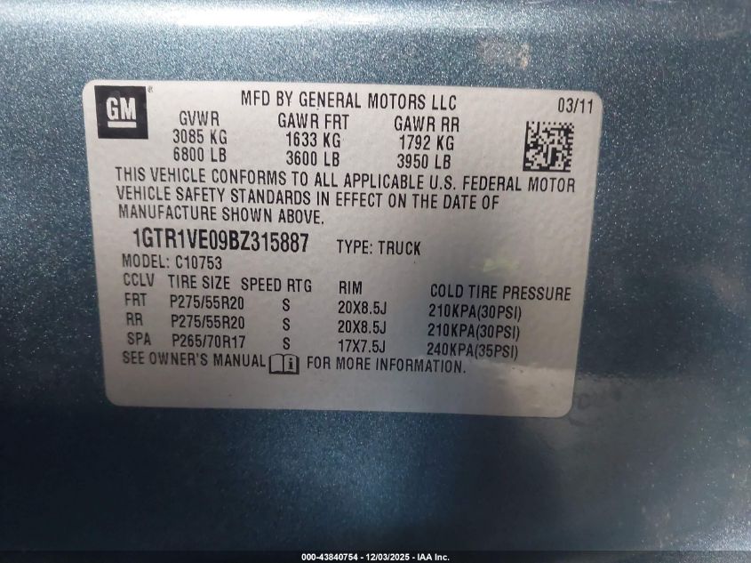 2011 GMC SIERRA 1500 2011 року Бензин, 5.3, , vin - 1GTR1VE09BZ315887 из США