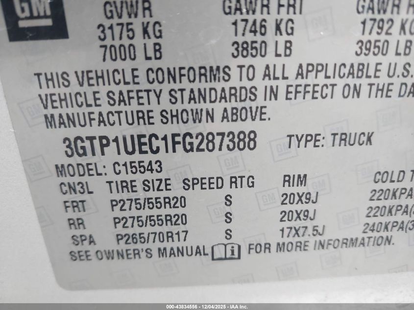 Цвет СеребряныйЦилиндры 8VIN 3GTP1UEC1FG287388Состояние Заводится и едет (проверено)Повреждения Обычный износДата аукциона 2025-12-11