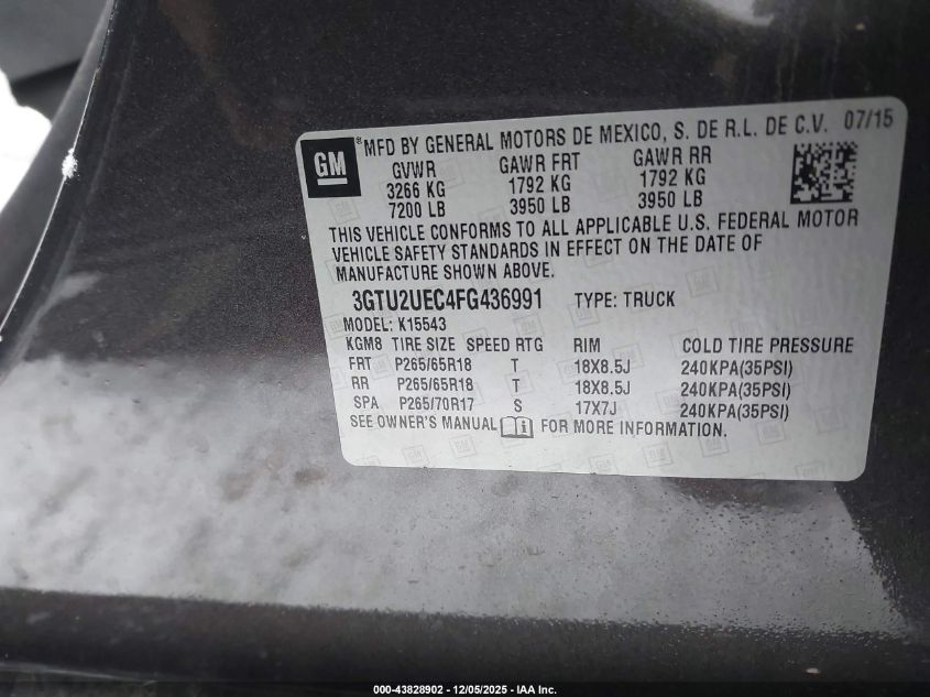 2015 GMC SIERRA 1500 2015 року Бензин, 5.3, Полный привод, vin - 3GTU2UEC4FG436991 из США