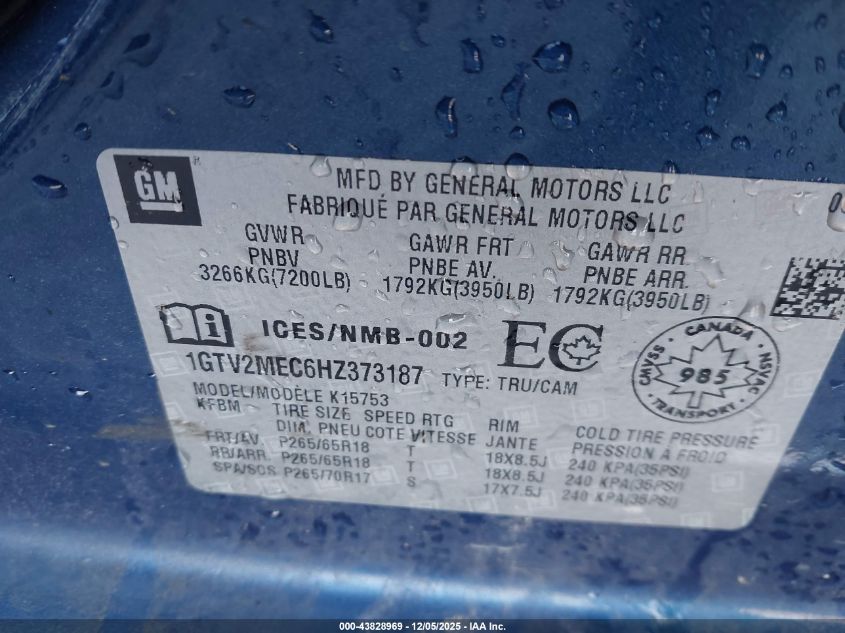 2017 GMC SIERRA 1500 2017 року Бензин, 5.3, Полный привод, vin - 1GTV2MEC6HZ373187 из США