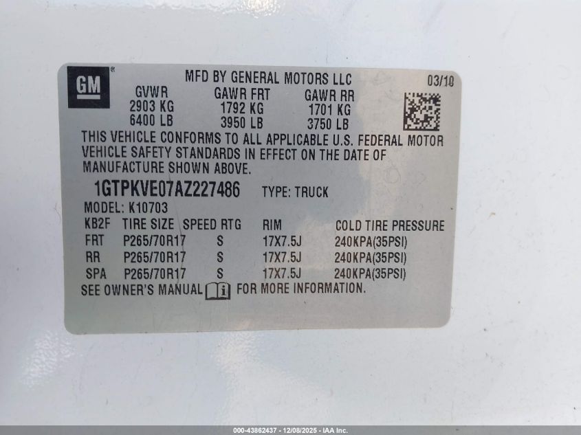 2010 GMC SIERRA 1500 2010 року Бензин, 5.3, Полный привод, vin - 1GTPKVE07AZ227486 из США