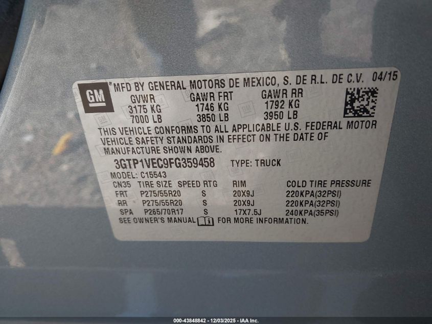 Цвет СерыйЦилиндры 8VIN 3GTP1VEC9FG359458Состояние ЗаводитсяПовреждения Передняя левая