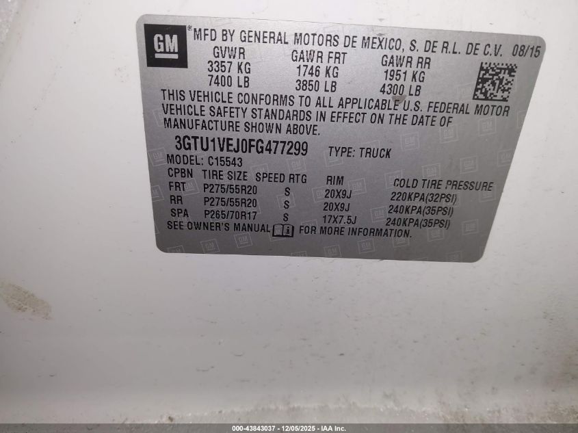 Цвет БелыйЦилиндры 8VIN 3GTU1VEJ0FG477299Состояние СтационарноПовреждения Передняя и задняя