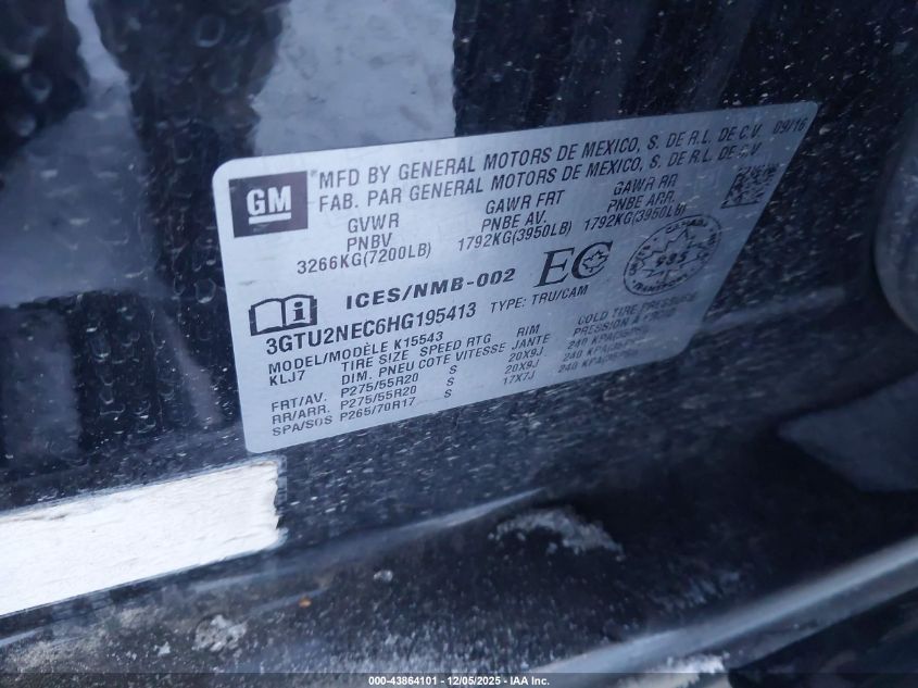 2017 GMC SIERRA 1500 2017 року Бензин, 5.3, Полный привод, vin - 3GTU2NEC6HG195413 из США