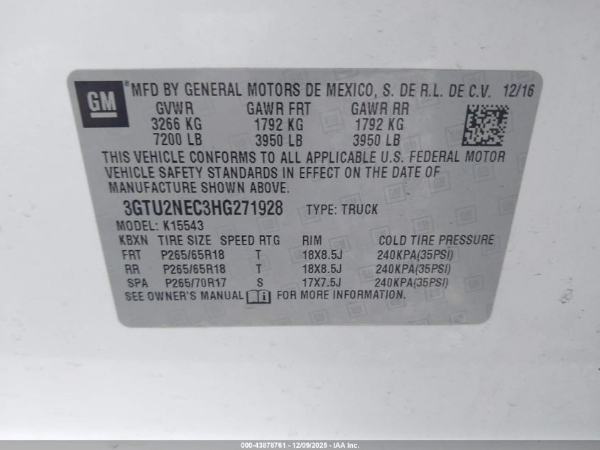2017 GMC SIERRA 1500 2017 року Бензин, 5.3, Полный привод, vin - 3GTU2NEC3HG271928 из США
