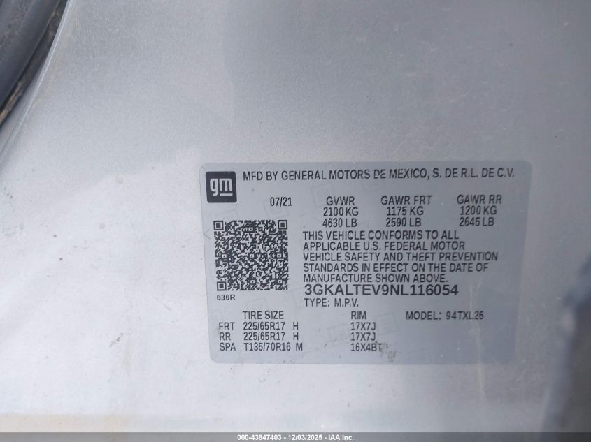 2022 GMC TERRAIN 2022 року Бензин, 1.5, Полный привод, vin - 3GKALTEV9NL116054 из США
