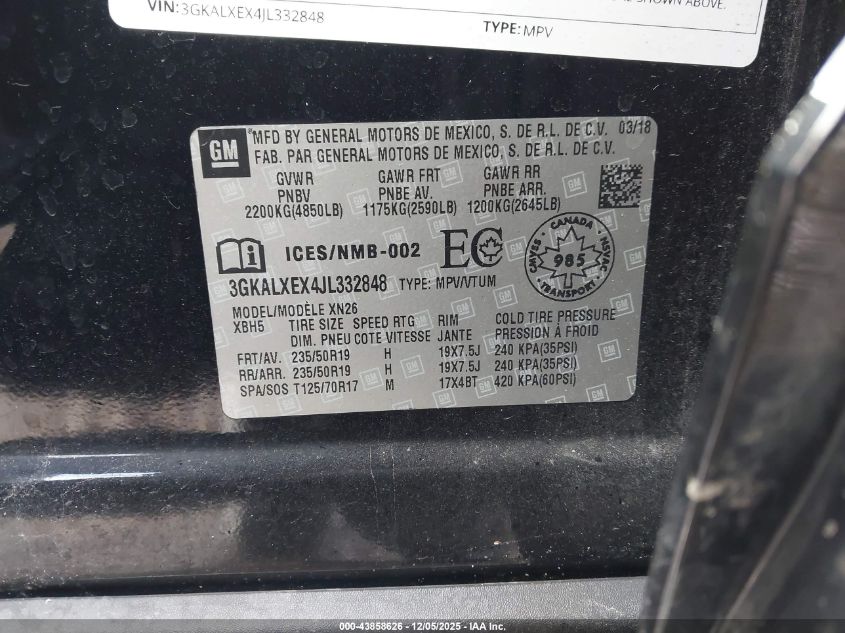 2018 GMC TERRAIN 2018 року Бензин, 2.0, Полный привод, vin - 3GKALXEX4JL332848 из США