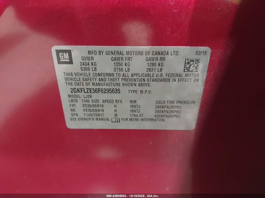 Цвет КрасныйЦилиндры 6Привод Полный приводVIN 2GKFLZE36F6295635Состояние Заводится и едет (проверено)Повреждения Левая сторона AutoRIA