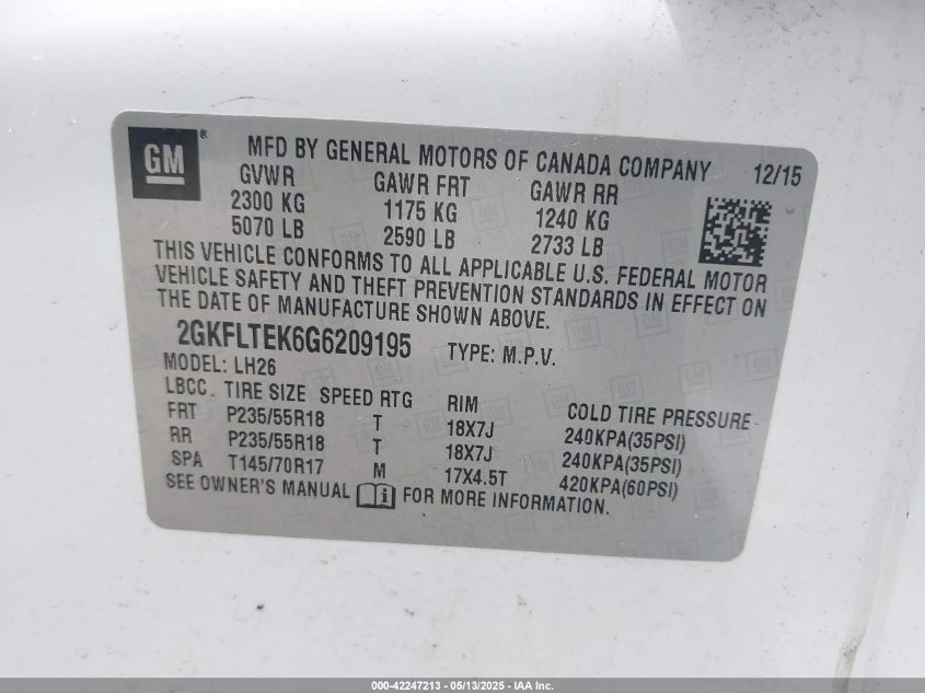 2016 GMC TERRAIN 2016 року Бензин, 2.4, Полный привод, vin - 2GKFLTEK6G6209195 из США
