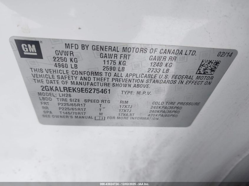 Цвет БелыйЦилиндры 4Привод Передний приводVIN 2GKALREK9E6275461Состояние Заводится и едет (проверено)Повреждения Передняя или задняя AutoRIA
