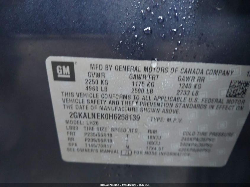 2017 GMC TERRAIN 2017 року Бензин, 2.4, Передний привод, vin - 2GKALNEK0H6258139 из США