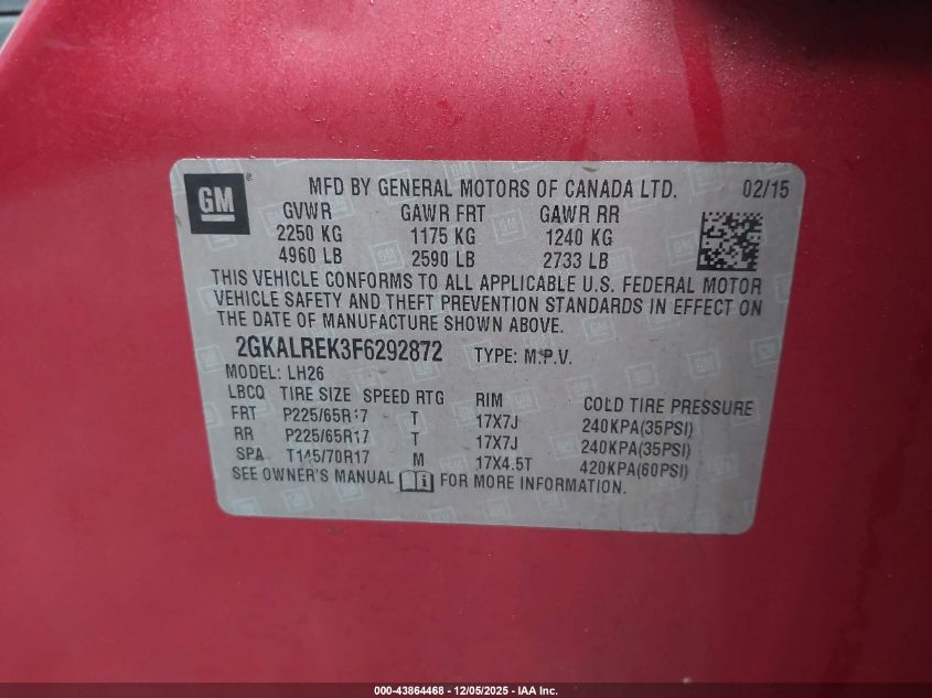 2015 GMC TERRAIN 2015 року Бензин, 2.4, Передний привод, vin - 2GKALREK3F6292872 из США