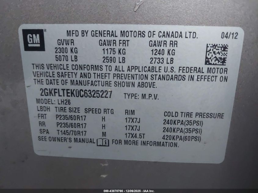 Цвет БежевыйЦилиндры 4Привод Полный приводVIN 2GKFLTEK0C6325227Состояние Заводится и едет (проверено)Повреждения Передняя или задняя AutoRIA