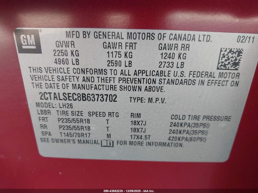 2011 GMC TERRAIN 2011 року Бензин, 2.4, Передний привод, vin - 2CTALSEC8B6373702 из США