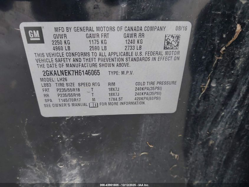 2017 GMC TERRAIN 2017 року Бензин, 2.4, Передний привод, vin - 2GKALNEK7H6146065 из США