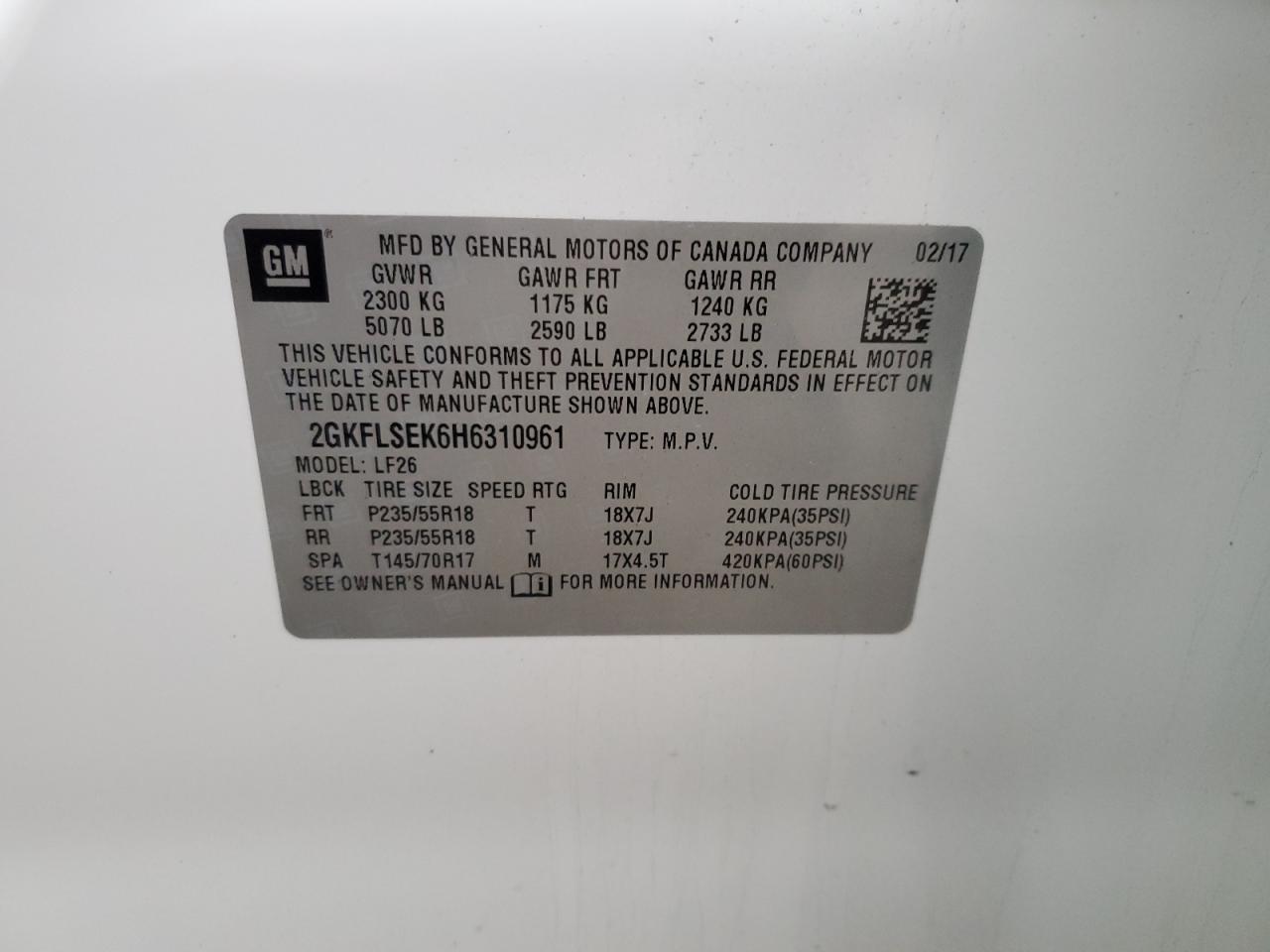 Цвет БелыйЦилиндры 4Привод Полный приводVIN 2GKFLSEK6H6310961Состояние Заводится и едет (проверено)Повреждения Передняя или задняя AutoRIA