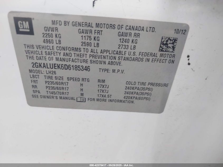2013 GMC TERRAIN 2013 року Бензин, 2.4, Передний привод, vin - 2GKALUEK6D6185346 из США