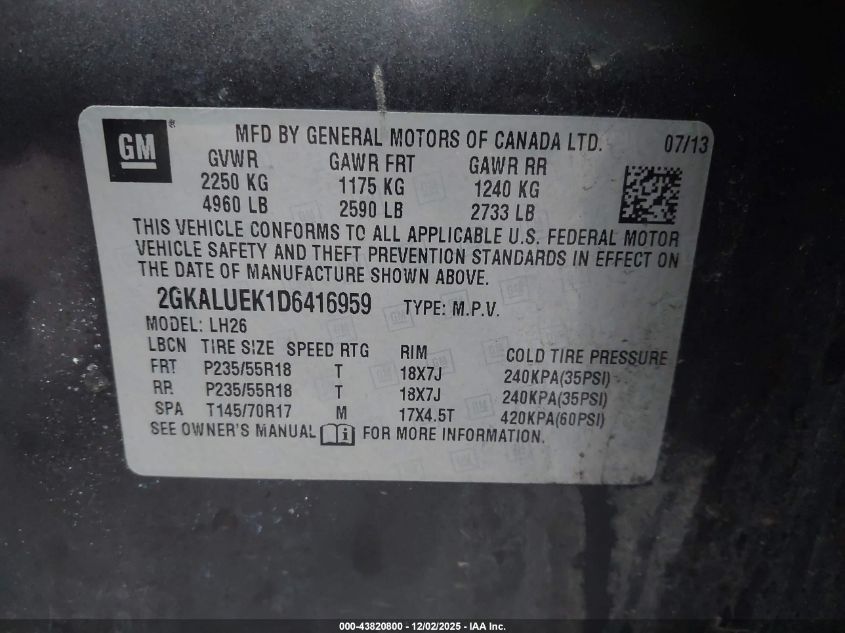 Цвет СерыйЦилиндры 4Привод Передний приводVIN 2GKALUEK1D6416959Состояние СтационарноПовреждения Передняя или задняя AutoRIA