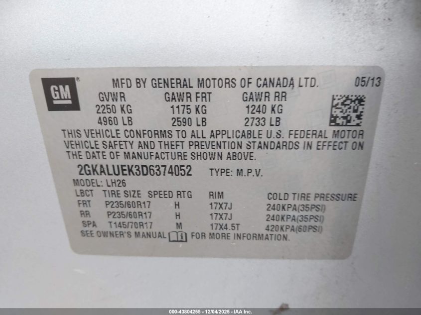 2013 GMC TERRAIN 2013 року Бензин, 2.4, Передний привод, vin - 2GKALUEK3D6374052 из США