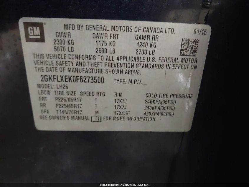 2015 GMC TERRAIN 2015 року Бензин, 2.4, Полный привод, vin - 2GKFLXEK0F6273500 из США