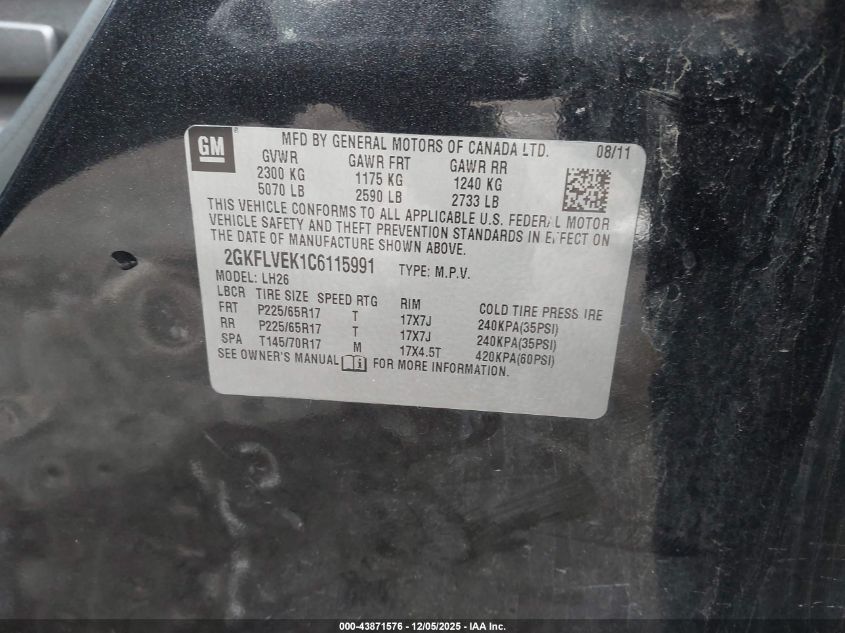 Цвет ЧерныйЦилиндры 4Привод Полный приводVIN 2GKFLVEK1C6115991Состояние Заводится и едет (проверено)Повреждения Передняя или задняя AutoRIA