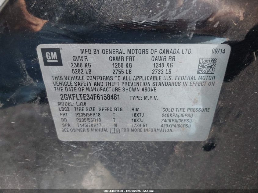 2015 GMC TERRAIN 2015 року Бензин, 3.6, Передний привод, vin - 2GKFLTE34F6158481 из США