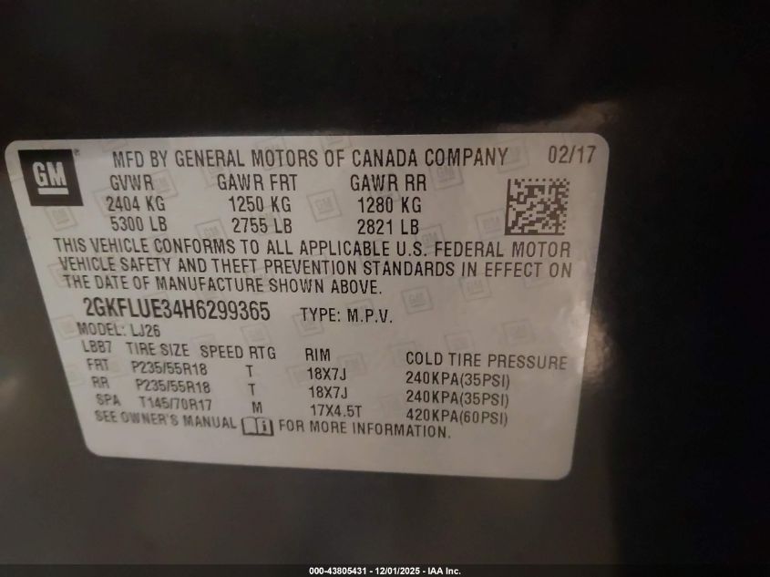 Цвет СерыйЦилиндры 6Привод Полный приводVIN 2GKFLUE34H6299365Состояние Заводится и едет (проверено)Повреждения Правая сторона AutoRIA