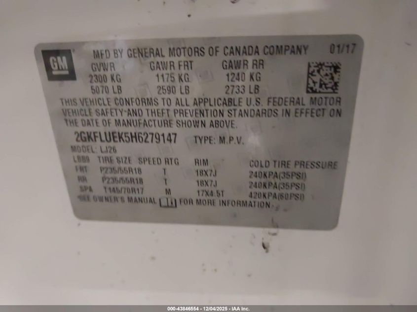 Цвет БелыйЦилиндры 4Привод Полный приводVIN 2GKFLUEK5H6279147Состояние СтационарноПовреждения По всему авто AutoRIA