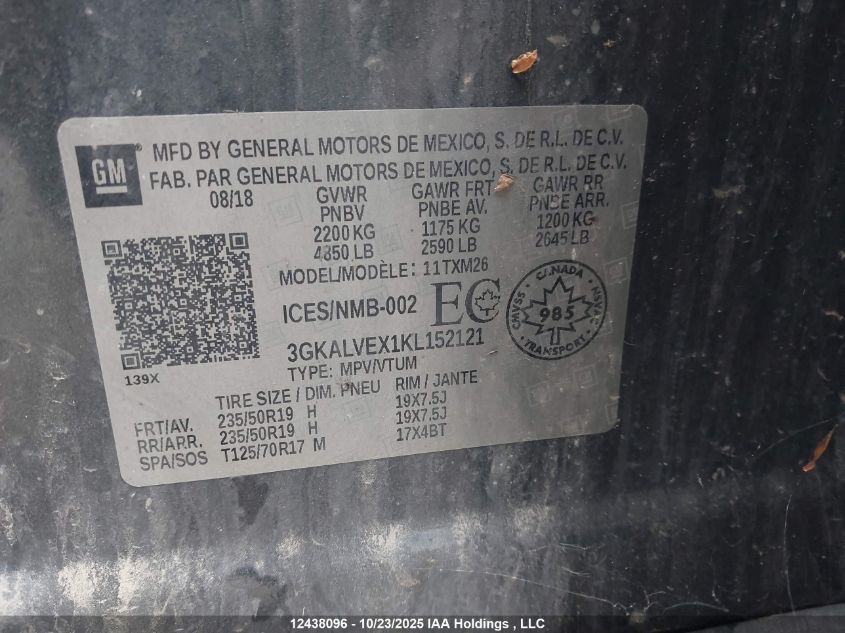 2019 GMC TERRAIN 2019 року Бензин, , Полный привод, vin - 3GKALVEX1KL152121 из США