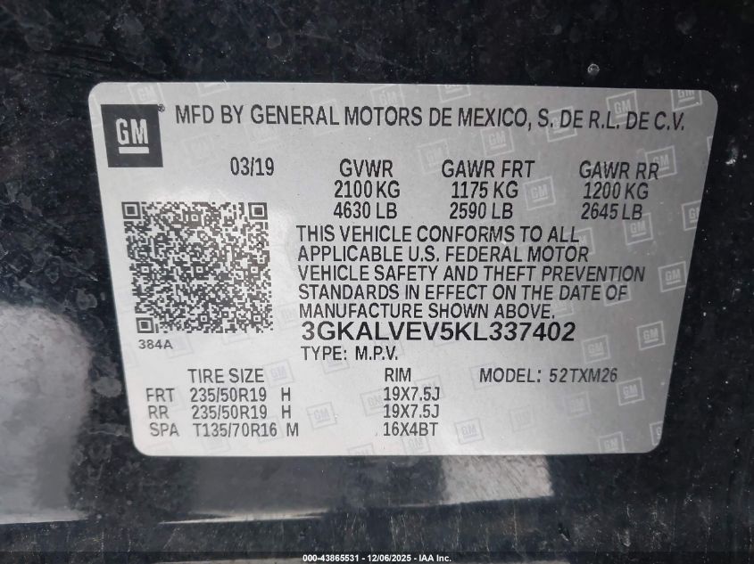 2019 GMC TERRAIN 2019 року Бензин, 1.5, Полный привод, vin - 3GKALVEV5KL337402 из США