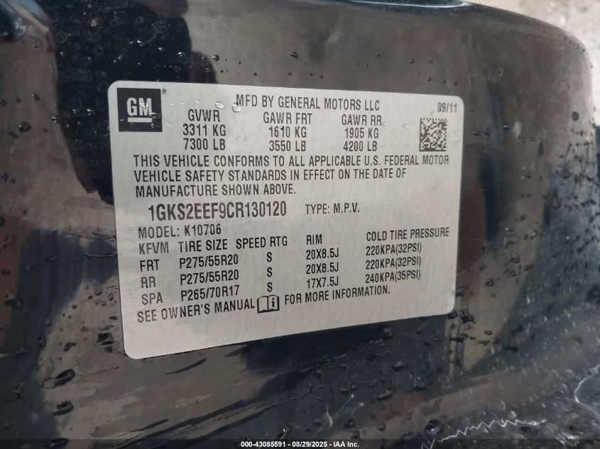 Цвет ЧерныйЦилиндры 8Привод Полный приводVIN 1GKS2EEF9CR130120Состояние Заводится и едет (проверено)Повреждения ГрадДата аукциона 2025-12-29