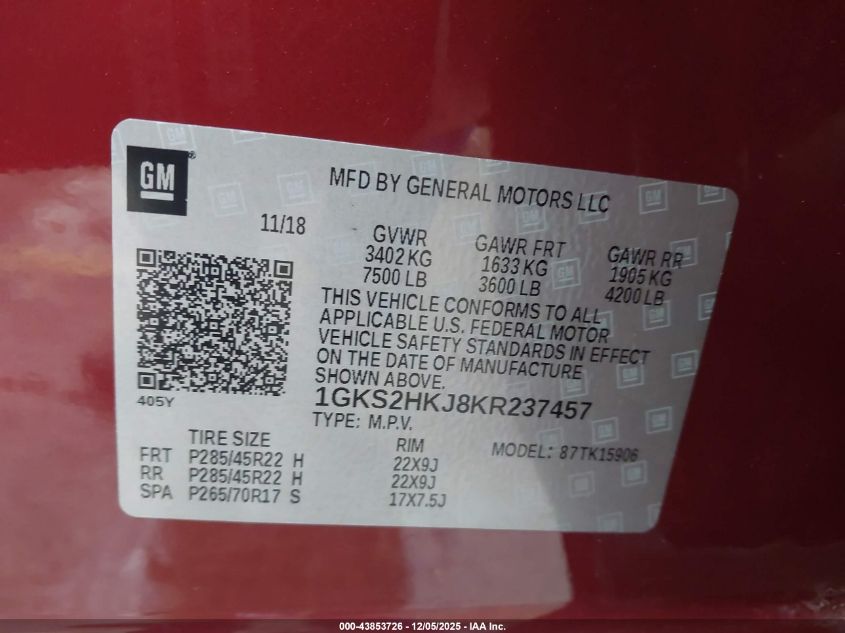 2019 GMC YUKON 2019 року Бензин, 6.2, Полный привод, vin - 1GKS2HKJ8KR237457 из США