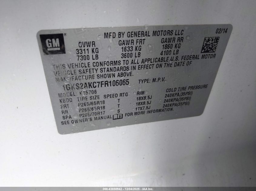 2015 GMC YUKON 2015 року Бензин, 5.3, Полный привод, vin - 1GKS2AKC7FR106065 из США