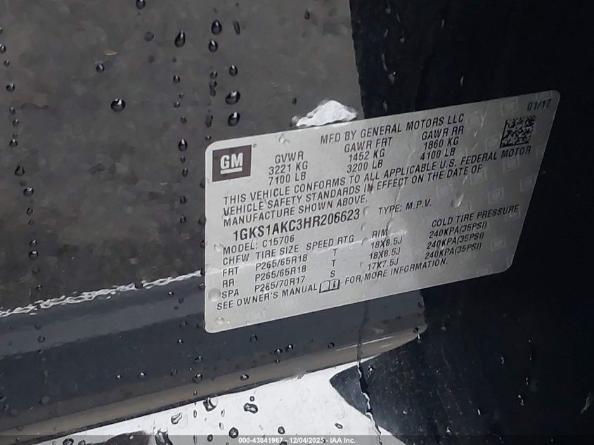 2017 GMC YUKON 2017 року Бензин, 5.3, , vin - 1GKS1AKC3HR206623 из США