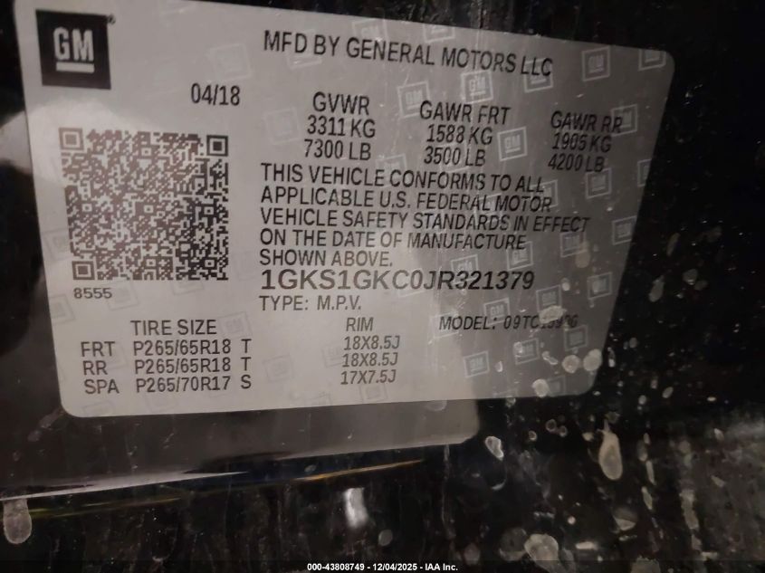 2018 GMC YUKON 2018 року Бензин, 5.3, , vin - 1GKS1GKC0JR321379 из США