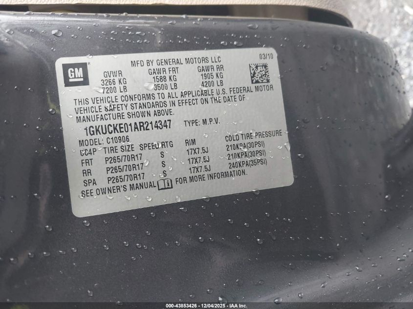 Цвет СерыйЦилиндры 8VIN 1GKUCKE01AR214347Состояние СтационарноПовреждения По всему авто